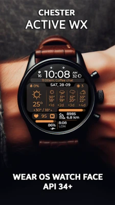 Introducing Chester Active WX, the ultimate Wear OS watch face combining sleek design with powerful functionality to meet all your active lifestyle needs.