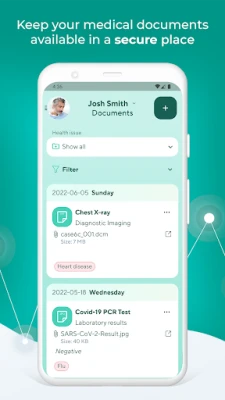 Keep all your medical documents available in a secure place, with the option to quickly share them with your doctor.