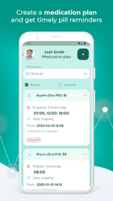 Create a detailed medication plan for you or your family members, with options to track inventory and set pill reminders.