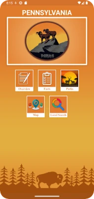 This is a premier Android app catering to almost every information of Pennsylvania State. It features 5 different modules providing information of the Pennsylvania State like General Info, State Facts, State & National Parks, Offline Map, Local Search(Nearest Search).