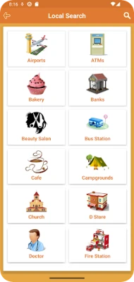 √ Find list of available Campgrounds, Restaurants, Bars, Hospitals, Drug Stores, Banks, ATM's, Shopping malls, Pizza huts, Gas Stations and Railway stations etc..