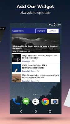 This powerful app brings you the most exciting news about human exploration of space, the universe, astronomy, and more. Articles, videos, new revelations, developments, launches and operations by NASA, SpaceX, Blue Origin, Virgin Galactic and others - we cover the most important, up to the minute news here.