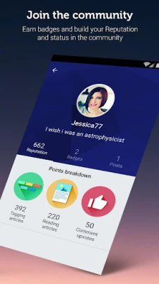 Fifth - A community of space lovers! An in app commenting system, article tagging, reputation points and badges!