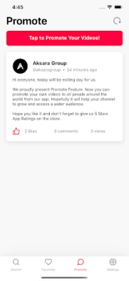 Now you can promote your own videos to all people around the world from our app. Hopefully it will help your channel to grow and access a wider audience.