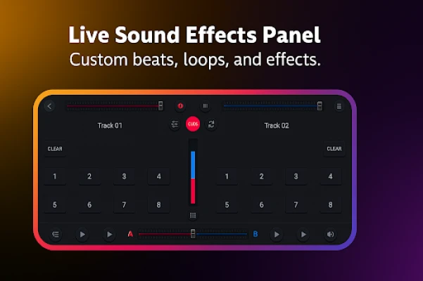 🎚️ Effects & Filters – Add loops, echo, reverb, flanger, and more to spice up your set.